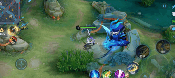 接下来,迅速调整自身位置,让自己处于两组野怪的一侧:以确保曜的一技能与强普,能够同时攻击到当下所有的目标。