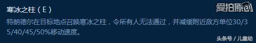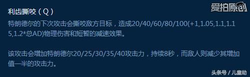 解析:Q技能是巨魔伤害的先决条件,在前期对拼很好用,可以增加自己的攻击力并减少敌人的攻击力,还有轻微的减速效果。这个技能在前期可以有效的限制敌方AD的输出,要多多利用。如果是对线期,利用E技能的减速缠住对方,Q技能加强自身输出降低敌人输出,开启W进行消耗即可。配合被动,这套技能加平A能打掉敌人很多血量,而自己不会特别伤。如果敌人没有很强的爆发,配合R能够打出击杀都不成问题。