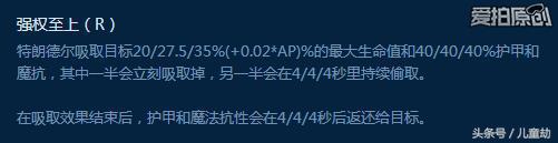 解析:在团战时,这个技能不但可以大大削弱敌方前排的坦克属性,对脆皮来说也难以承受。这也是巨魔为什么会有很多人喜欢用的原因,如果地方前排太肉的话,一个R就能帮助己方输出打出不错的伤害。所以开团不要吝啬大招,更不要想着最后释放,有机会就直接先手丢掉。同时,吸取高额的生命值也能让残血巨魔保住性命甚至反杀敌方英雄。