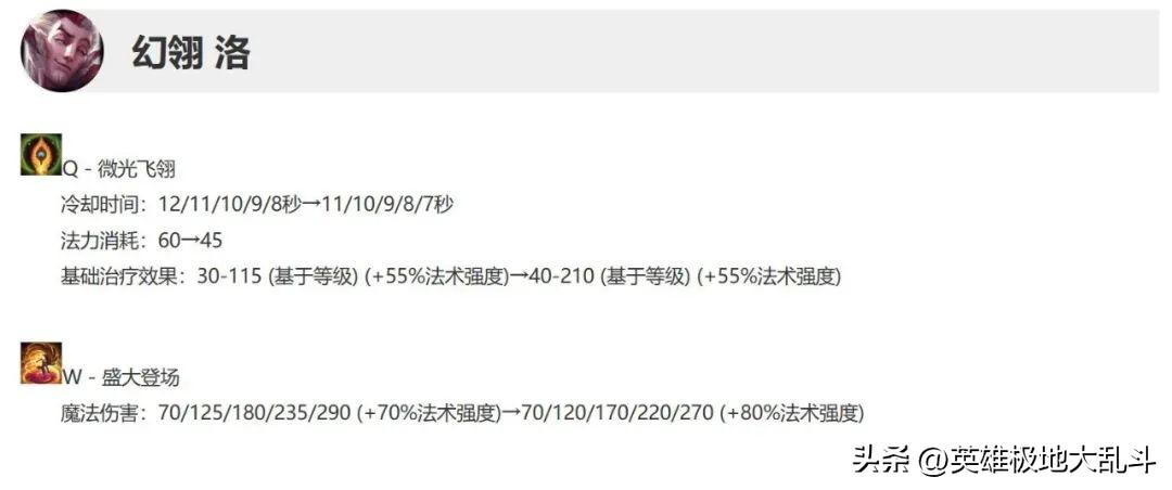 加上之前12.19版本把洛被动护盾加成提升至0.95,Q技能AP加成提升至0.7。