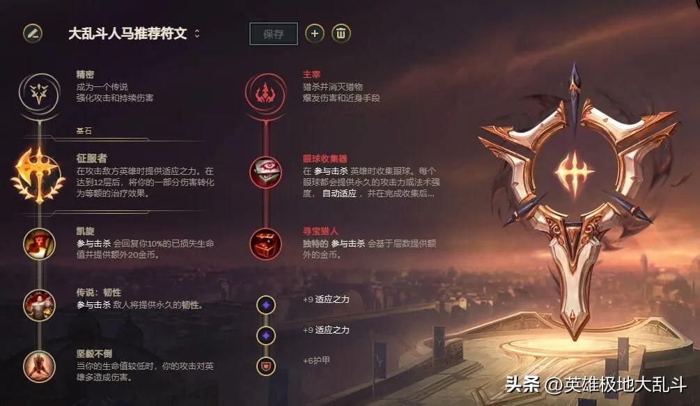 符文解析:冲人堆打架肯定点征服者保证持续输出,叠满还能把伤害转化为治疗效果,不要太爽。