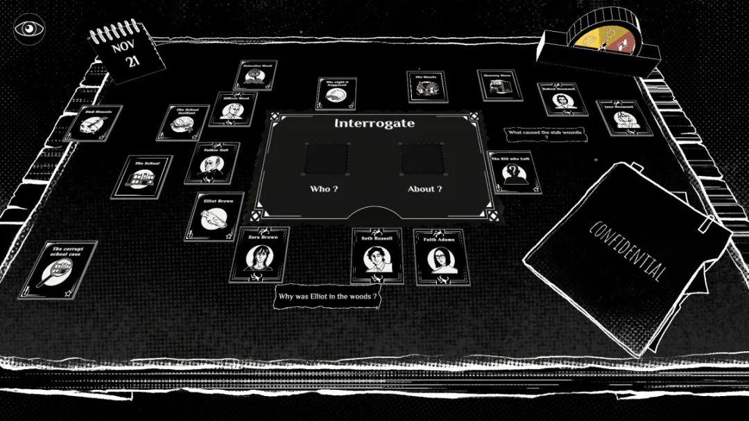 一种全新的侦探游戏类型,要揭露的案件完全由卡片呈现。就任何卡片询问任何角色。剖析导致 Eliott Brown 死亡的事件…… 写下自己惊心动魄的调查故事,与世界各地的同行分享。