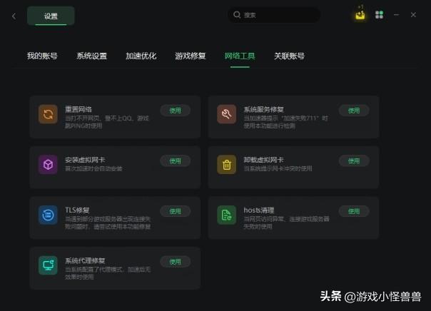 更厉害的是,奇游加速器还有一大堆实用功能呢!比如专业的网络修复工具、FPS优化工具,碰到网络设置问题、网络文件hosts异常等,都能用奇游的网络工具箱来快速解决。简直就是游戏玩家的贴心小助手啊!