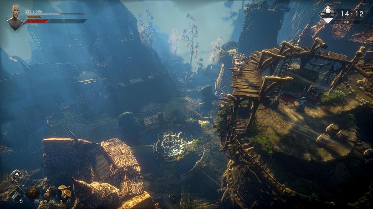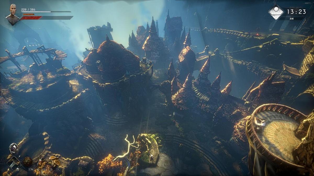 提到月亮工作室,不得不说便是其大师级别的光影效果,以及其冠绝群雄的美术设计,击败BOSS,驱散阴雨,登上高台,沐浴在阳光之下,摄像头拉远,俯瞰圣城建筑,一切绝景尽收眼底,这让我想起登上洛斯里克高墙、魔法学院时所见的绝景,月亮工作室也确实将这份魂系的浪漫美学雕刻进了《恶意不息》,当然,这份美丽每位玩家都能感受的到,自然也不必多言。
