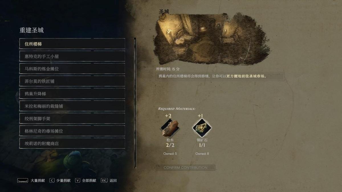直到我打开了第二个“国度”档位,带着我的所有传家宝进入到一个一模一样的新手世界时,我可能才意识到《恶意不息》并不是一款纯正的魂游,而是有点偏刷子向的RPG游戏,游戏需要玩家利用采集来的食物材料补足游戏刻意缺失的坐火回血,需要玩家采集建筑材料提升主城建筑等级进而加强自己的配置,不得不说这个机制是有些创新有趣。