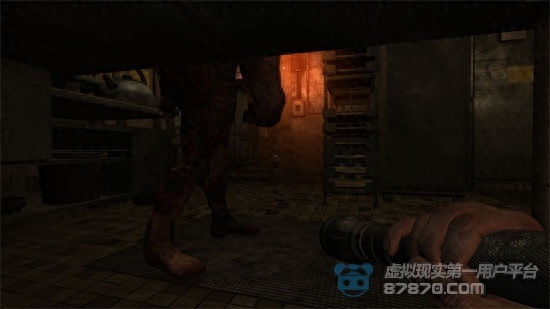 当你钻入床底逃避怪物的时候,使用VR进行游戏的优势就凸显出来了,因为你可以移动头部来观察四处寻找你的怪物,所以让临场感瞬间提升到极致。如果单单使用普通显示模式,使用鼠标移动视角时总有一种脱离感,并且当你想要移开目光的时候,你游戏中的人物并不像在VR环境下那样,可以跟随你目光的移动。当你想逃避的时候,却又发现自己无处可逃,这种感觉或许是所有喜欢玩恐怖游戏的玩家需要的。