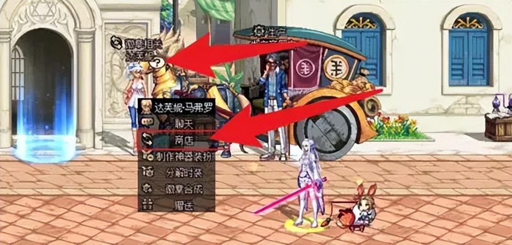 在地图里找到npc【达芙妮】,和她对话后点击【商店】