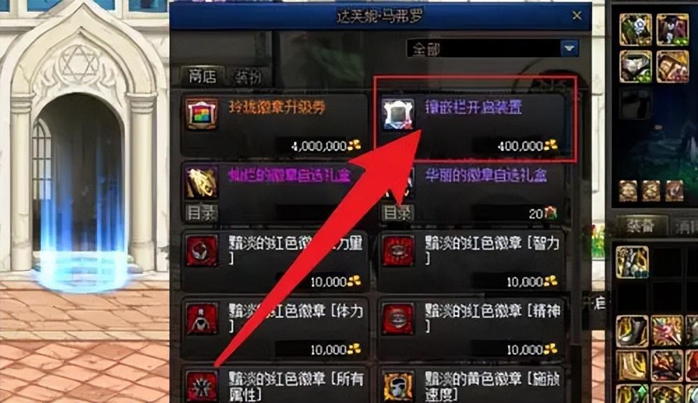 在商店中我们要购买一个【镶嵌栏开启装置】,这个道具售价为40万金币,建议大家攒够钱再来买