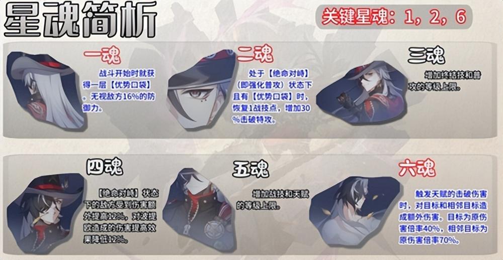 二魂:处于强化普攻下且有优势口袋时,恢复1战技点,增加30%击破特攻