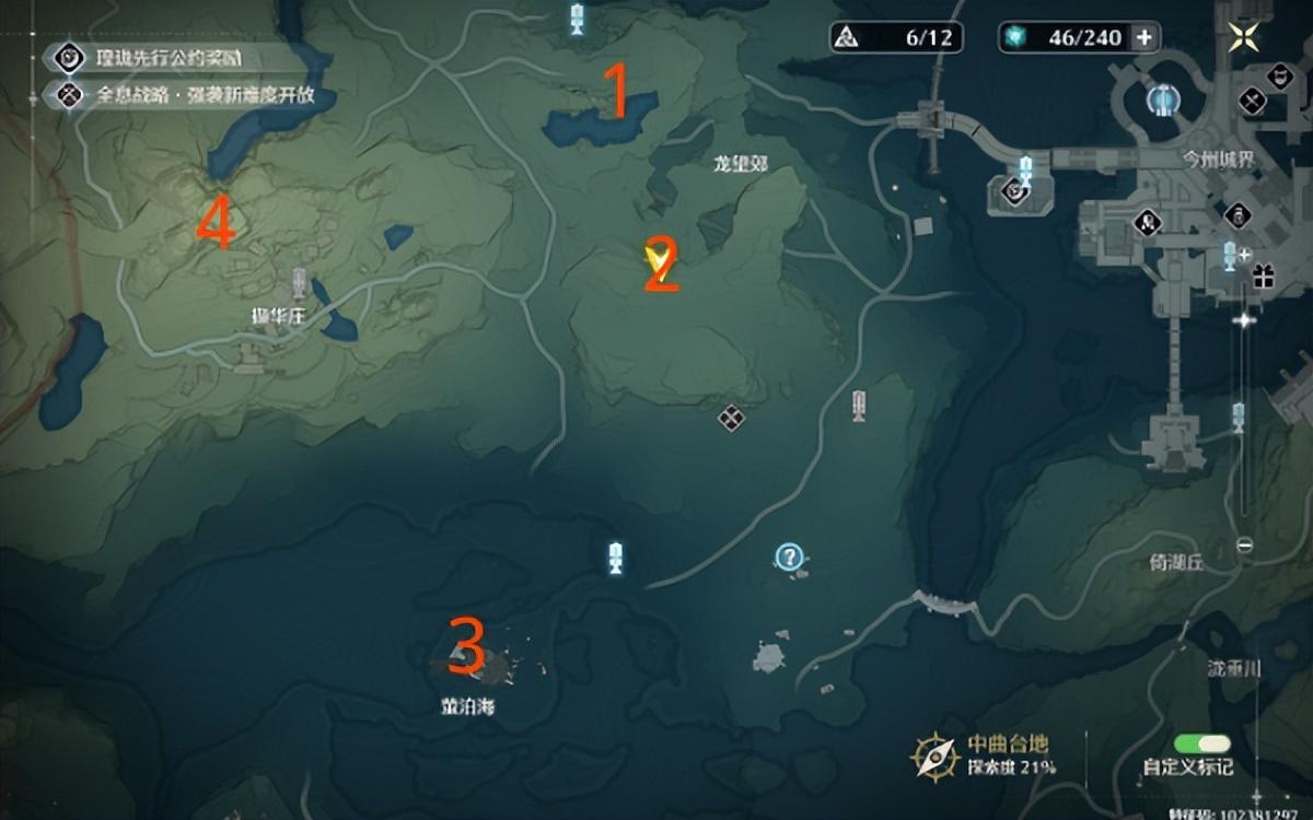 第一个声匣位于龙望郊,传送到信标后,往南边走,在小湖泊的山顶上,需要攀爬一下。