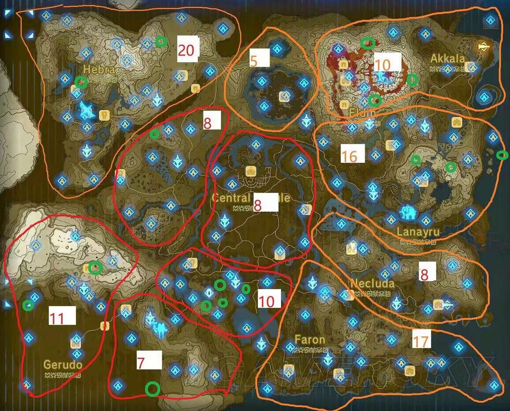 区域地图一: 中央海拉鲁 (1-21 号神庙)