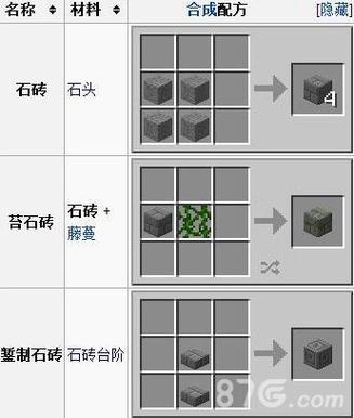 有了原材料,咱们就可以开始制作石砖啦!石砖家族可是非常庞大的,而且每一种都有独特的魅力。