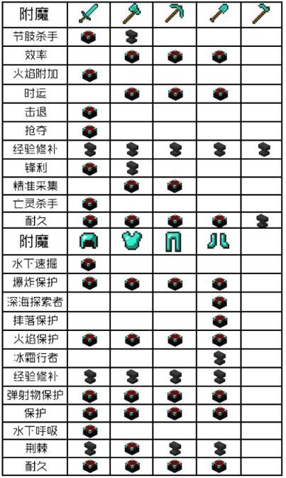 | 经验修补 | I-III | 利用经验值来修复镐子 |