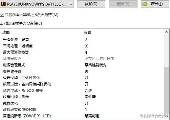 找到“管理3D设置”,然后点击“程序设置”,添加你的吃鸡游戏程序,这里一般是“TslGame.exe”。
