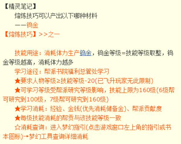 3、如果玩家想要学习熔炼技能,需要玩家等级≥技能等级-20,并且消耗一定的经验、金钱和帮贡。