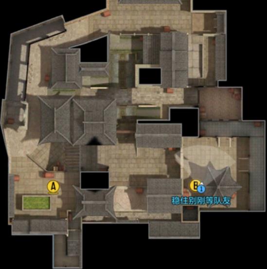 A点的具体进攻思路如下:A大方向为主攻,A小道为辅助,人员配置有两种方案:①3人A大,2人A小。②4人A大,1人A小。以上两种方案要依据敌方具体布防情况来选择。