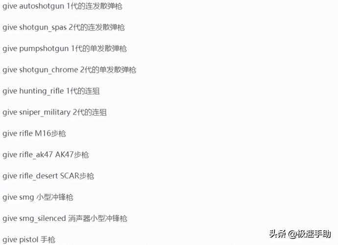 《求生之路2》的指令有很多,这里只是列举了部分常用的指令。如果你想了解更多指令,可以搜索相关资料,或者查看游戏的官方网站。