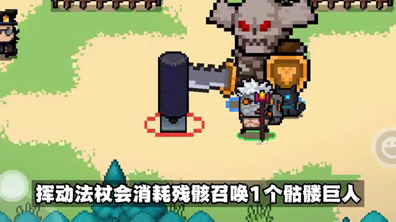 骷髅巨人靠近敌人时会使用巨剑敲击地面,产生直径范围约为6.3格的震荡波。激光加粗加粗天赋能让骷髅巨人的震荡波范围扩大50%,震荡波可消除弹幕,暴击时附加眩晕。震荡波基础伤害20点。特别提示,所有骷髅的攻击均可暴击,且受攻速加倍和攻速减半因子影响。
