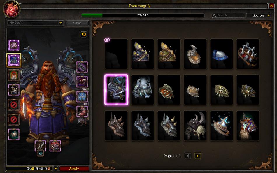 现在当你选择一个装备槽时,你将预览到所有该角色当前可用的装备外观。你可以尽情挑选,并选择“应用”按钮,所有操作就已经搞定。此外玩家还可以将不同的外观保存为套装,这样就能够在后续时间里随时改变自己的全身造型。如果你为每一个专精都设计了独立的套装外观,而只要你切换专精你的造型也将随之改变!