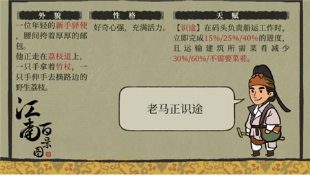 3、该角色具有识途天赋,可以减少玩家码头船运工作的进度。