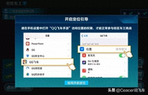 想成为街区车王,当然要先找好属于自己的“地盘”,车手们可以在自己的手机设置中,打开GPS定位功能,确认自己的街区。街区车王中将以各个城市街区的地标为赛场,车手们在赛场附近,即可选择该赛场,并挑战附近的车手。