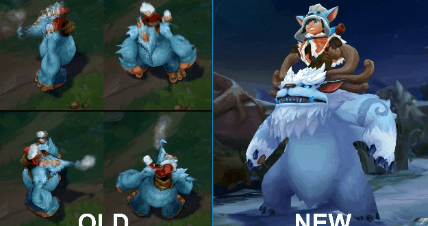 努努的所有皮肤原画都进行的了更新,值得注意的就是那款“脏兮兮”皮肤了,简直是改头换面的存在,让人忍俊不住,因为实在是太过可爱了,我想提莫的地位受到了莫大的威胁。