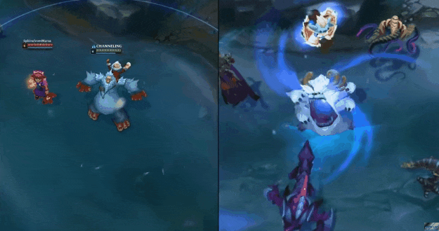 大招的整体效果类似,但新版努努施法大招无论是技术动作还是特效都让人眼前一亮,这个重生的威朗普似乎太饥饿了,想要吞噬掉召唤师峡谷的一切。