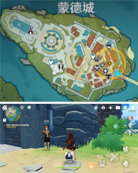 3、向城门附近的卫兵打听情报,去蒙德城的东边门找士兵对话,NPC叫劳伦斯。