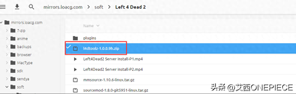 打开cccc://mirrors.loacg.zzz/soft/Left%204%20Dead%202/ 复制里面的l4dtoolz地址,并用wget下载并解压