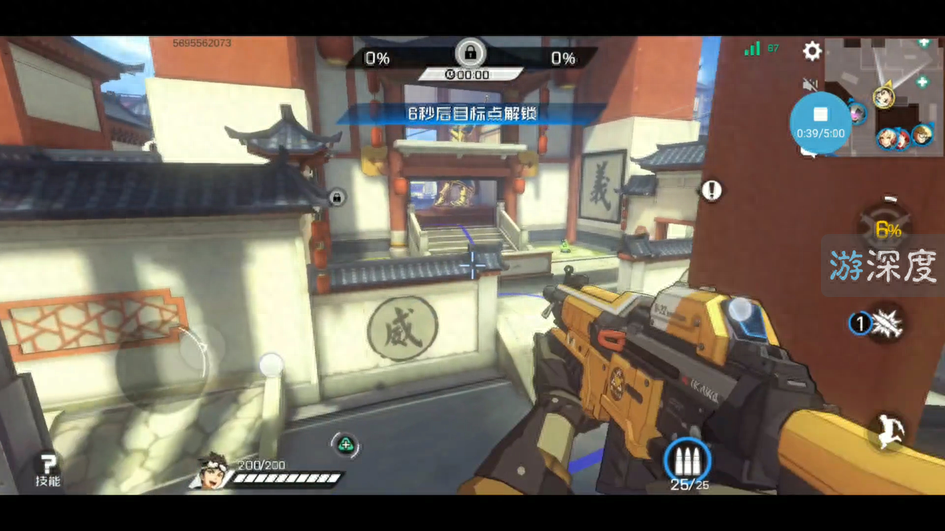 看完人物我们进入游戏看看,咦某些地图也很眼熟啊?古色古香的建筑,却搭配科技感十足的人物和枪支,仿佛又带我回到了OW的花村地图当中。甚至不少细节UI标志都懒得自己搞,比如这个“A”的标志吧,看上去和刺客信条Abstergo公司标志如此相似。