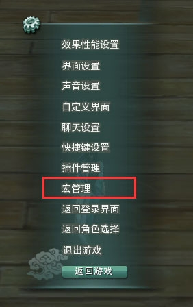 创建宏:在游戏内按ESC呼出主菜单面板选择宏管理