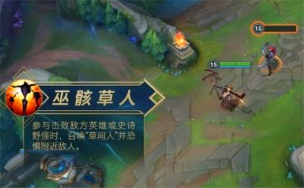 费德提克参与击杀敌方英雄或史诗野怪时,会在目标被击败区域召唤【草间人】。【草间人】会开始蓄力,一段时间后,对周围敌人造成大范围的恐惧效果。
