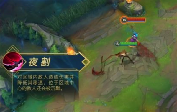 费德提克挥舞夜之镰,对目标区域的敌人造成魔法伤害和持续减速效果,位于区域中心的敌人还会被沉默。
