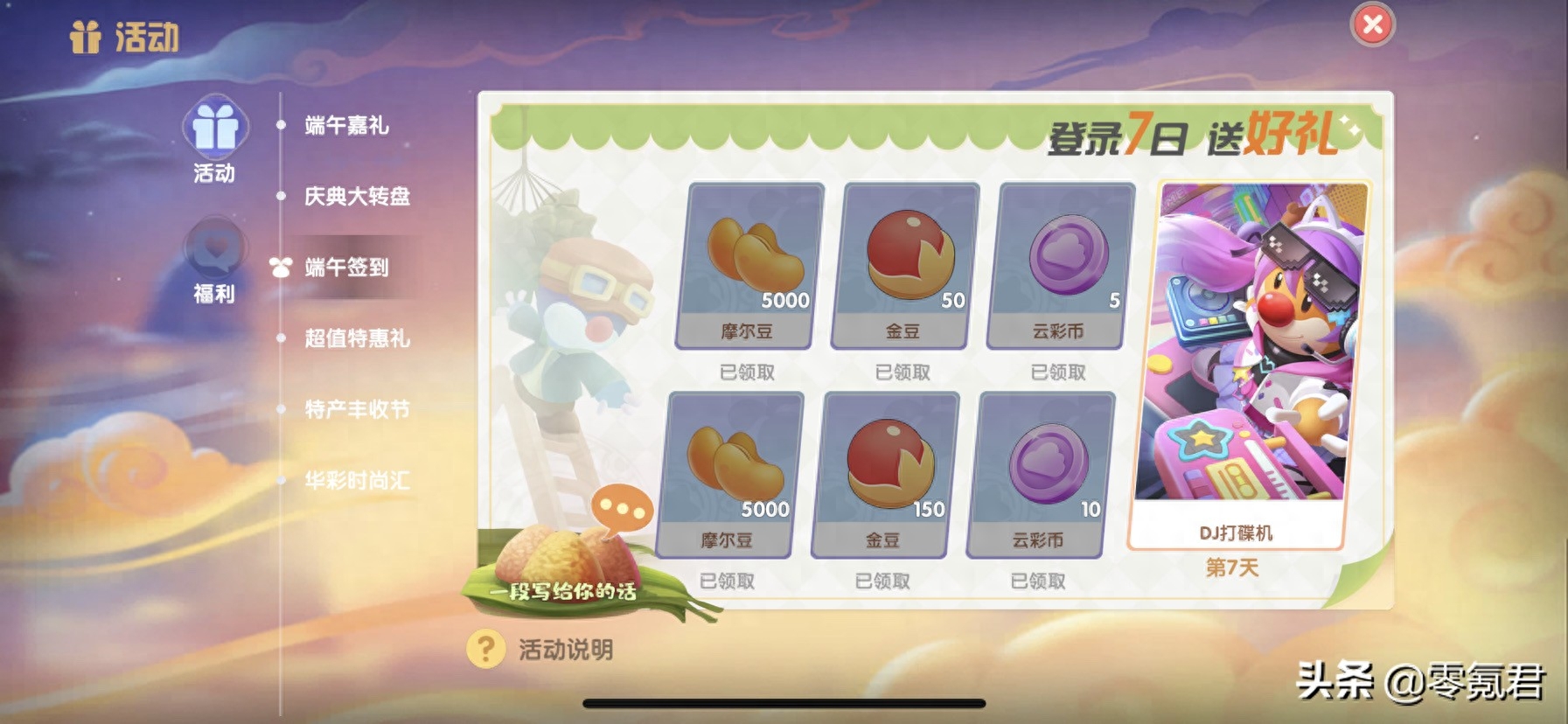 各位“摩尔庄园”当中的小摩尔们大家好,欢迎大家来到本期的分享~签到之后也是能领取到10个云彩币,加上第3日签到领取到的5个云彩币,这不,有玩家就用这15个白嫖云彩币是抽到了3件套装。