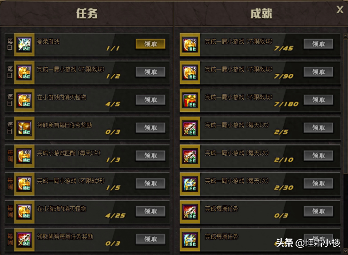 迷你大乱斗的每周任务可以简单概括为玩家完成5局小游戏,3天完成小游戏匹配,消灭25个怪物。每日小游戏要求玩家完成2局小游戏,消灭5个怪物,也就是说玩家每天完成每日任务后必定会完成每周任务,因此玩家优先完成每日任务即可。