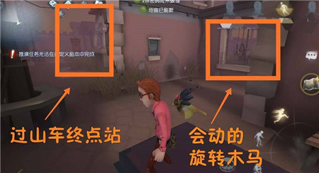 5、旋转木马地窖:在会动的旋转木马墙后,过去就是过山车终点站和小门。
