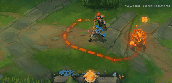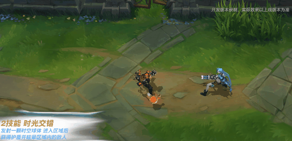 时空开启!艾克的路径会有橙色虚线指引,启动后会回到残影所在的位置,周围出现巨大的橙色保护圈,进行回复自身生命值,并对范围内的敌人造成伤害。