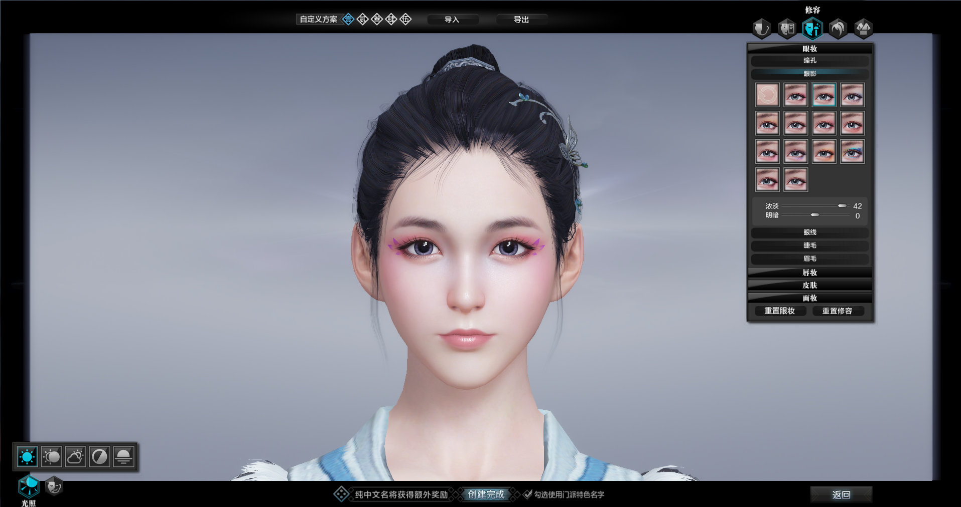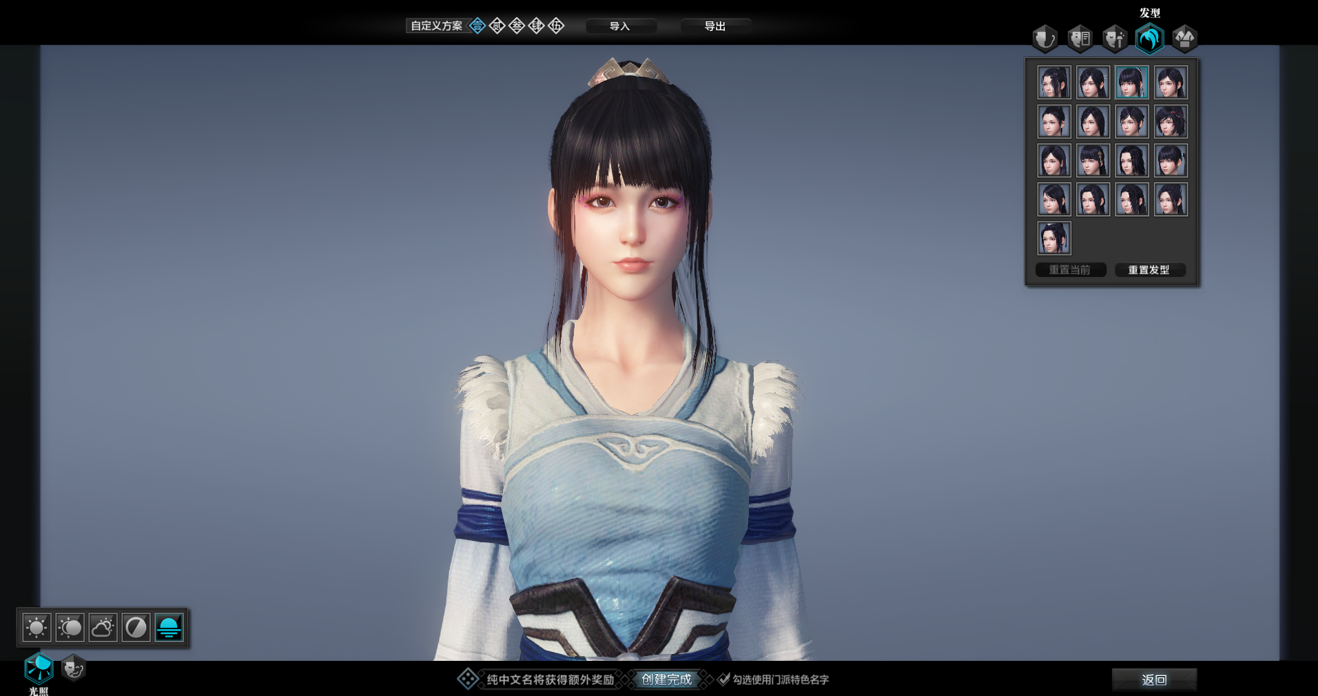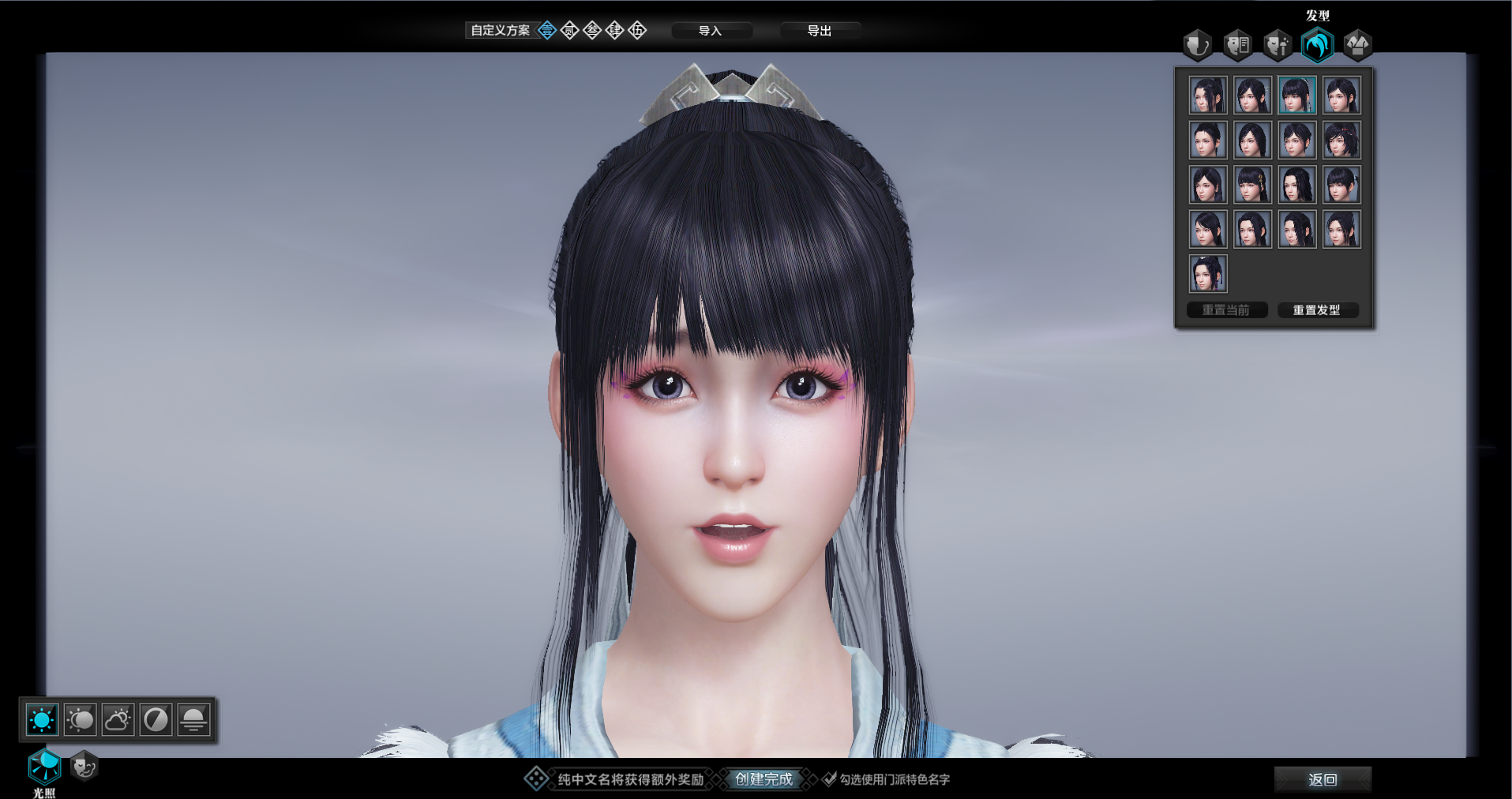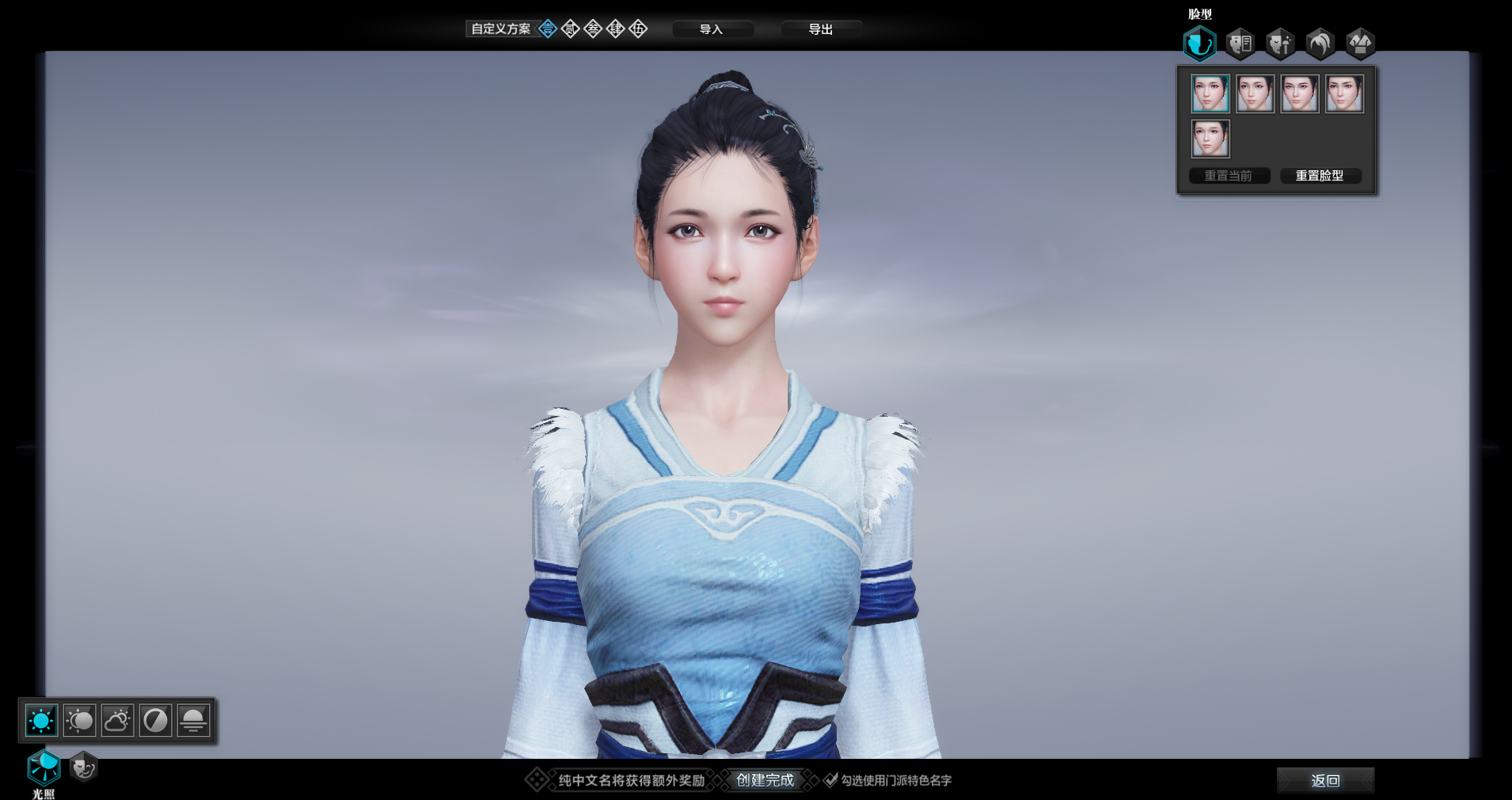 捏脸界面左下角的“光照”可以查看角色在不同光照下的效果呈现。