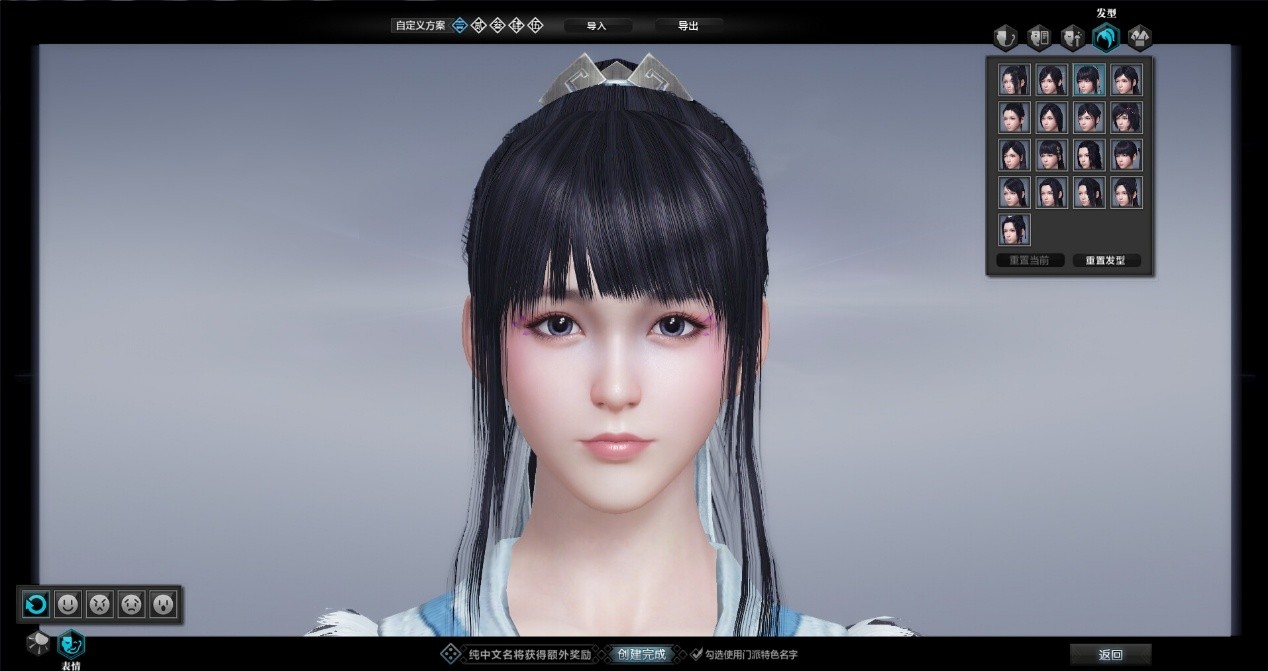 Step 4 通过捏脸界面中“修容”、“发型”中的选项来改变角色外观。