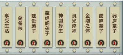 藏经阁弟子:虽然这个游戏中的经书并不是越多越好,但是获取它们非常困难,你不是去抢就是去偷……但在初期,你不可能赢得其他人,也不能潜入别人的藏经阁,所以这个选项也是必选的。选择这个选项还可以使用辟谷符,这在初期是一个神器。