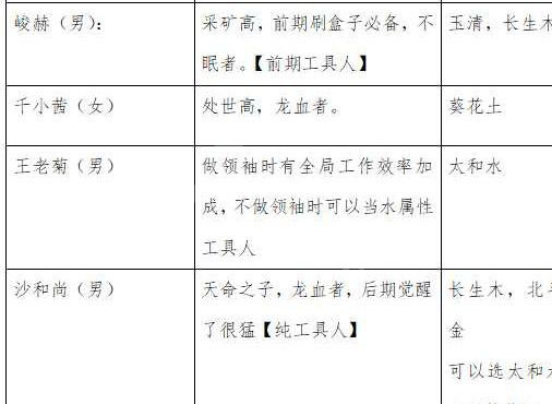 1.必须有一些高属性的角色,如采矿者,巧匠等。